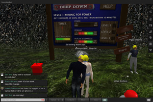 I should say, up front, that I'm hardly what you'd call a hardcore Second Life user. Which is why I spent the first 10 minutes floating around the lush green Appalachian landscape as something resembling a glowing smoke monster. And someone kept trying to give me a hard hat, (very important, even in a virtual mining area) but I wasn't sure where a non-corporeal entity could put a hard hat. Once I figured out how to put some clothes on (note: check your inventory) and got my hard hat in place, I was ready to blow stuff up. That was the first activity in the Virtual Mine experience. I, and a few fellow miners, ventured to the top of a mountain, laying mines at a dozen flags. We retreated to the safety of a nearby hill as the game's organizers counted to zero. BOOM! As the coal dust settled, we could see that the top of the mountain had been obliterated. It's not a pretty sight, even when it's not real.
