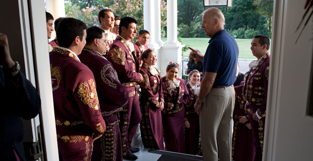The Vice President’s social secretary was looking for a student mariachi to play at the party; he happened to call one of Mariachi High’s advisors, who told him that while there are no D.C. student mariachi groups, the Texas All-State champions happened to be coming to Washington for the screening of the film at National Geographic’s All Roads Film Festival. The rest, as they say …was history. The same star quality that led us to choose the band for Mariachi High shined brightly for Biden and all the guests. The highlight for me was when five-foot tall high school senior Ashley Guzman introduced Vice President Biden with so much poise, humor, and cleverness that Biden spent the first 90 seconds of his talk applauding Ashley, and asking if she'd coach him for his upcoming debate! Read more about the Vice President’s Hispanic Heritage celebration from the White House blog. http://www.whitehouse.gov/blog/2012/09/27/celebrating-hispanic-heritage-month-naval-observatory